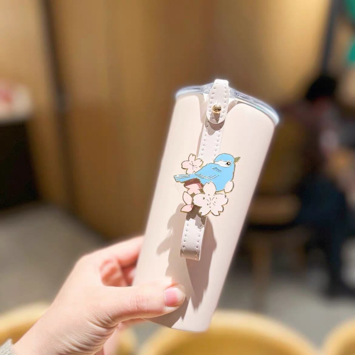 ストラップ付き!鳥 桜 ステンレス グリッター キラキラ タンブラー 台湾 スターバックス 韓国 中国 海外 北米 STARBUCKS スタバ