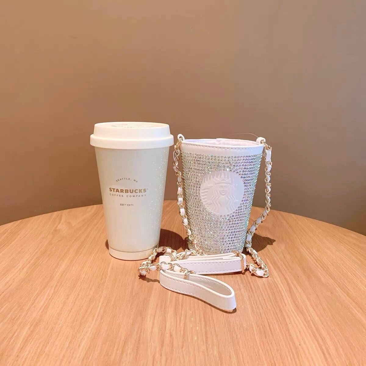 ボトルホルダー付き!キラキラ ホログラム ステンレスタンブラー 台湾 スターバックス 韓国 中国 海外 北米 STARBUCKS スタバ