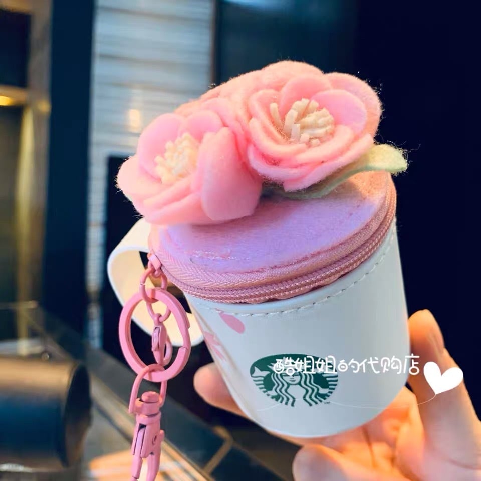 2点セット!薔薇 バラ ポーチ ストラップ コインケース 台湾 スターバックス 韓国 中国 海外 北米 STARBUCKS スタバ