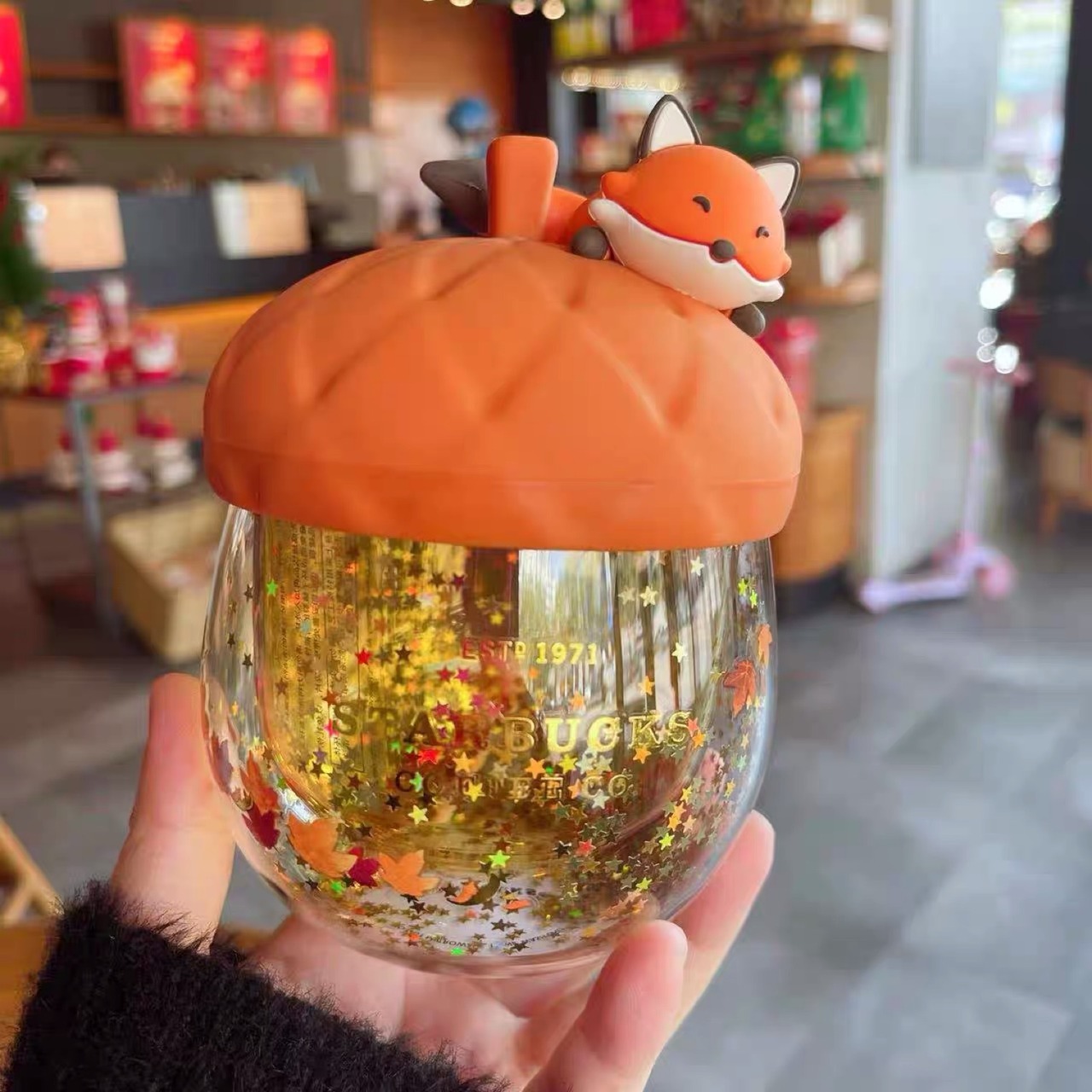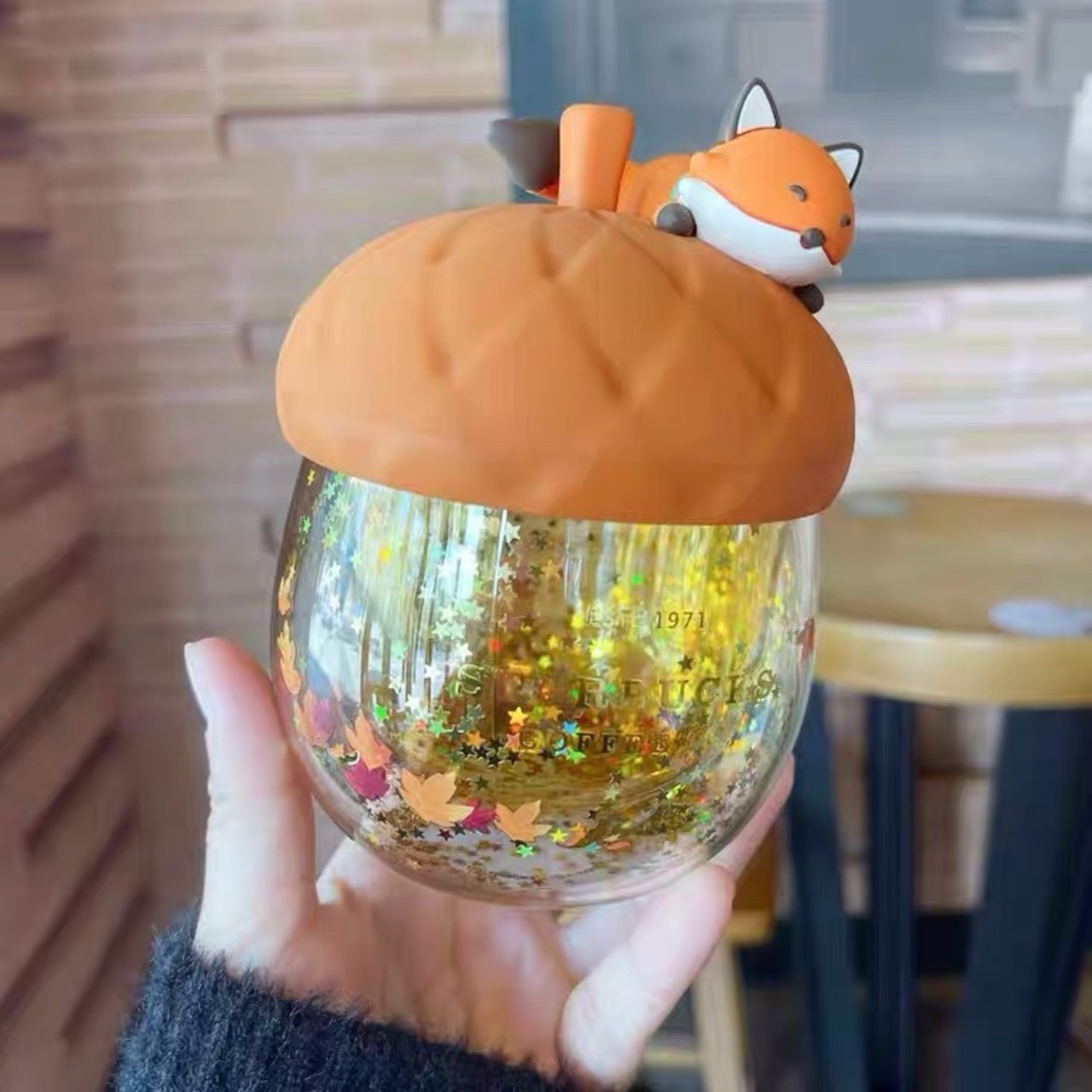蓋付!キラキラ グリッター 狐 きつね グラス 台湾 スターバックス 韓国 中国 海外 北米 STARBUCKS スタバ