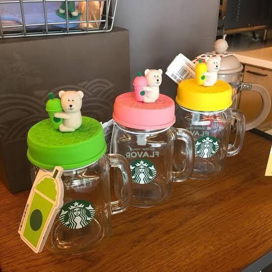 蓋付!メイソンジャー ベアリスタ 熊 ガラスボトル マグカップ 台湾 スターバックス 韓国 中国 海外 北米 STARBUCKS スタバ