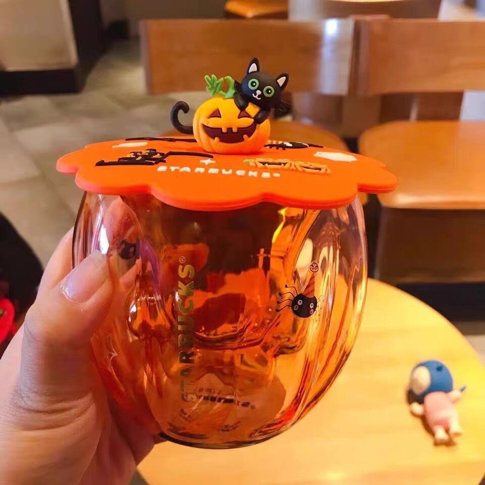 蓋付!マグカップ カバー ハロウィン カボチャ 黒猫 猫 グラス タンブラー 台湾 スターバックス 韓国 中国 海外 北米 STARBUCKS スタバ
