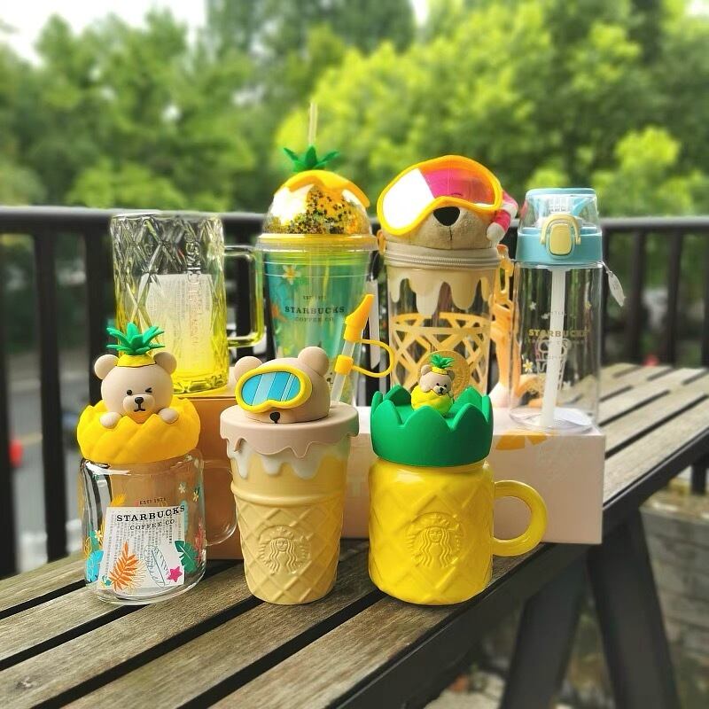 蓋付き!ベアリスタ パイナップル マグカップ 熊 タンブラー 台湾 スターバックス 韓国 中国 海外 北米 STARBUCKS スタバ