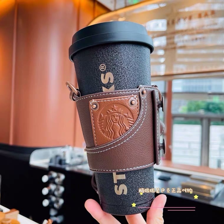 ボトルホルダー付き!ステンレスボトル レザー ロゴ セイレン サイレン マグカップ タンブラー 台湾 スターバックス 韓国 中国 海外 北米 STARBUCKS スタバ