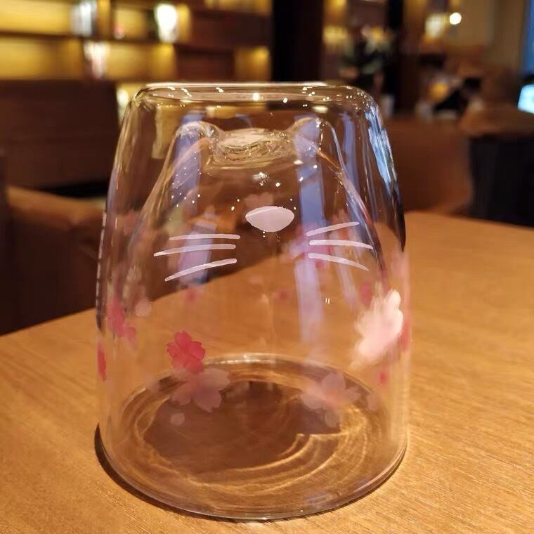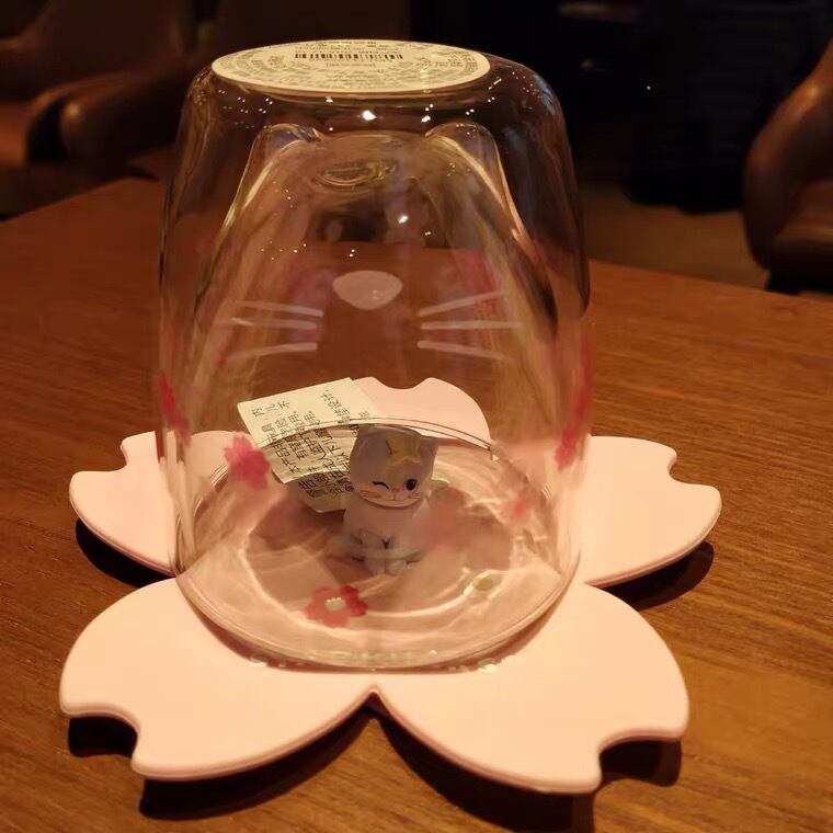 蓋付!ガラス 猫 桜 コースター マグカップ タンブラー 台湾 スターバックス 韓国 中国 海外 北米 STARBUCKS スタバ