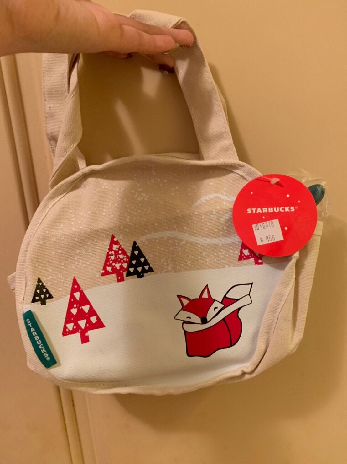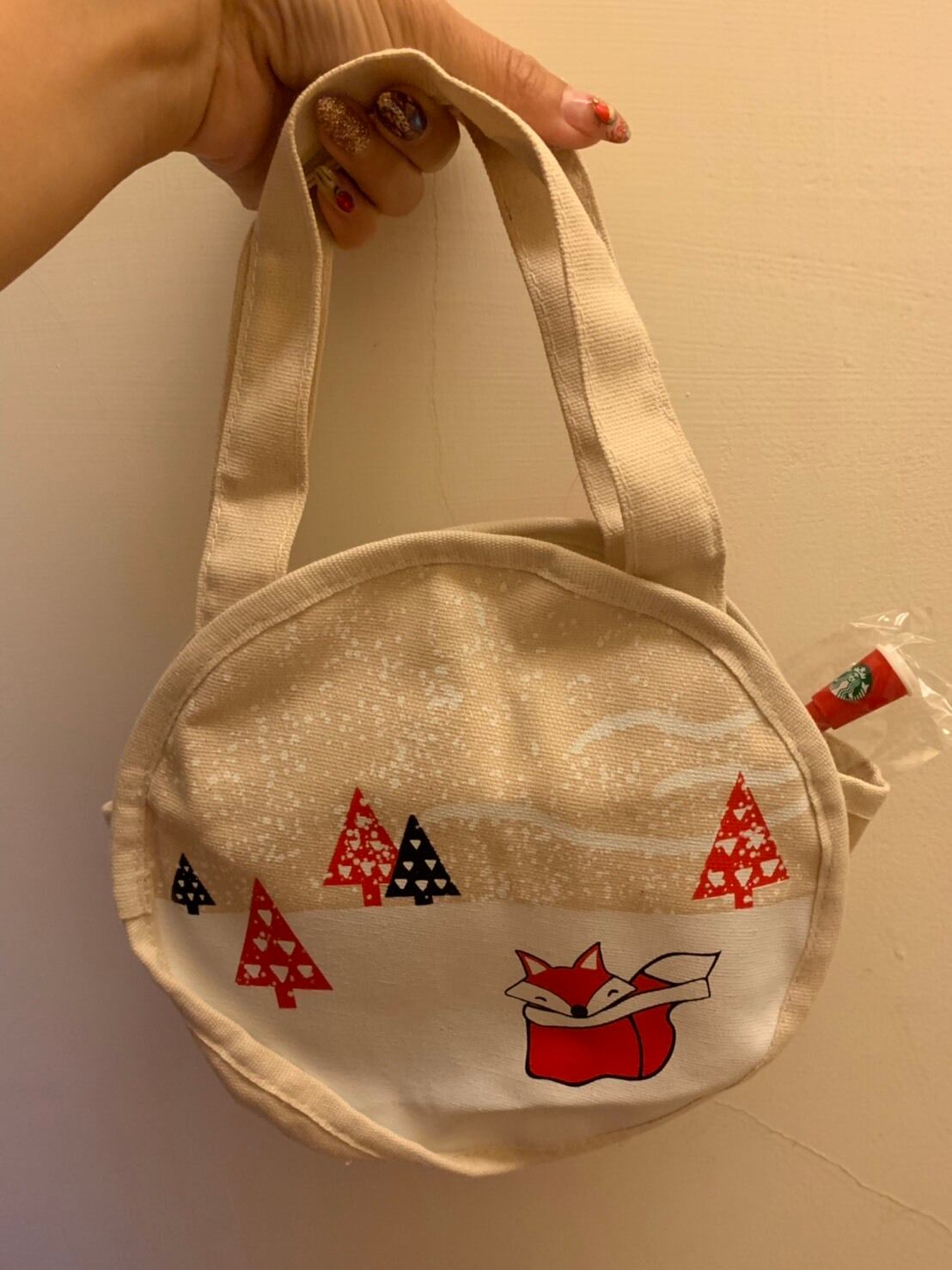 マドラー付き!狐 きつね ポーチ トートバッグ 鞄 バック 手提げ エコバッグ 台湾 スターバックス 韓国 中国 海外 北米 STARBUCKS スタバ