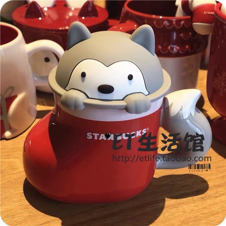 蓋付き!犬 戌年 干支 ハスキー クリスマス サンタ マグカップ タンブラー 台湾 スターバックス 韓国 中国 海外 北米 STARBUCKS スタバ