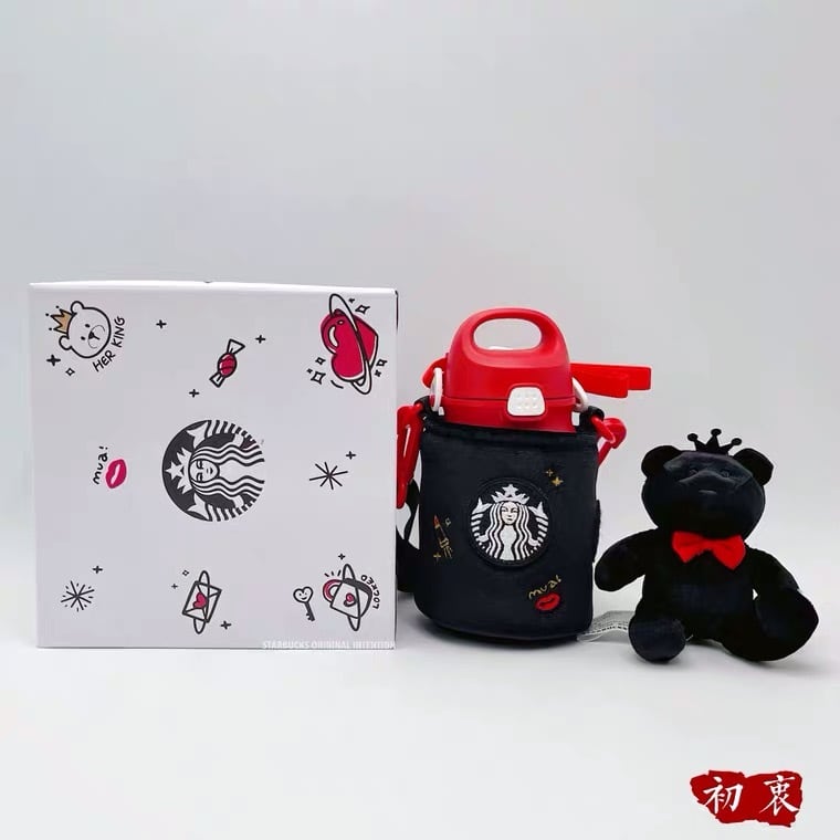 ベアリスタ 付き!ボトルホルダー 黒熊 ベアリスタ 熊 サーモス ストラップ キーホルダー ハート アロー バレンタイン マグカップ タンブラー 台湾 スターバックス 韓国 中国 海外 北米 STARBUCKS スタバ