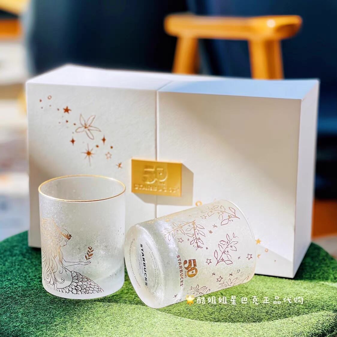 2点セット!ペア 女神 セイレン ガラス 50周年 アニバーサリー マグカップ タンブラー 台湾 スターバックス 韓国 中国 海外 北米 STARBUCKS スタバ