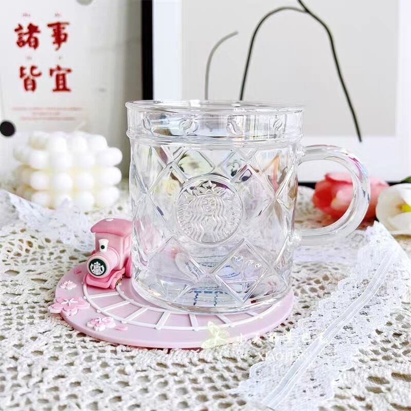 コースター付き!ガラス グラス コップ オーロラ アニバーサリー 汽車 列車 マスコット マグカップ タンブラー 台湾 スターバックス 韓国 中国 海外 北米 STARBUCKS スタバ