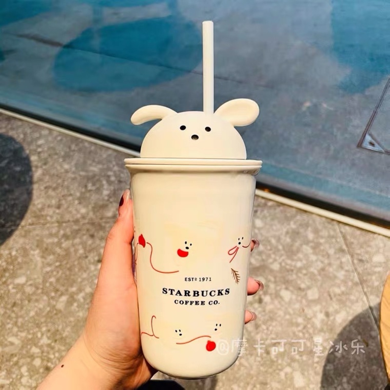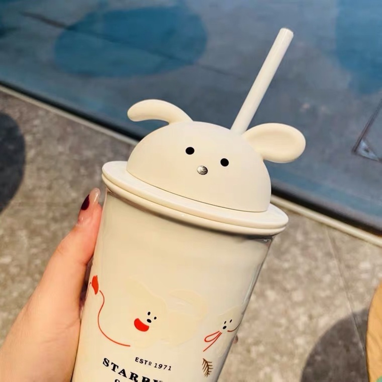 ガラス 陶器 犬 ストロー マグカップ タンブラー 台湾 スターバックス 韓国 中国 海外 北米 STARBUCKS スタバ