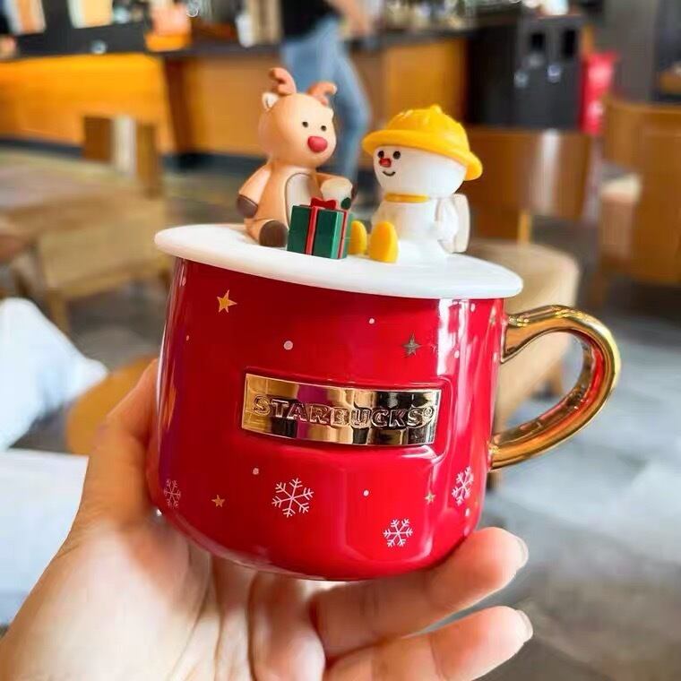 蓋付き!雪だるま トナカイ クリスマス マグカップ タンブラー 台湾 スターバックス 韓国 中国 海外 北米 香港 アメリカ シンガポール タイ 雑貨 STARBUCKS スタバ マグ ボトル プレゼント ギフトにも!