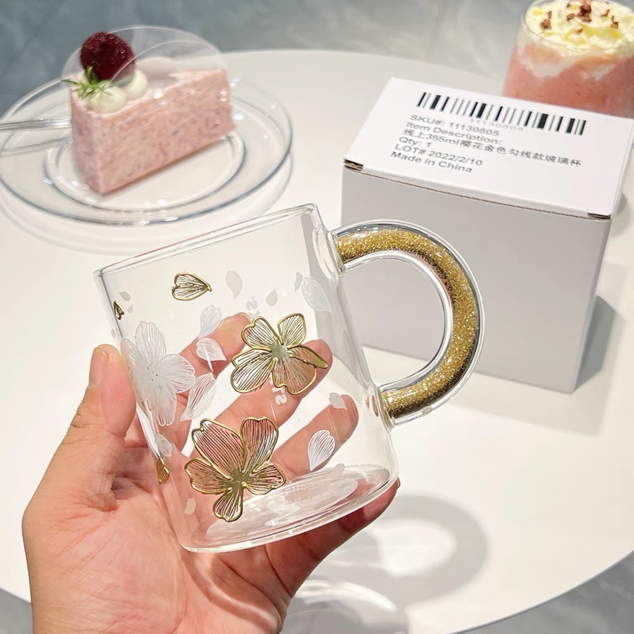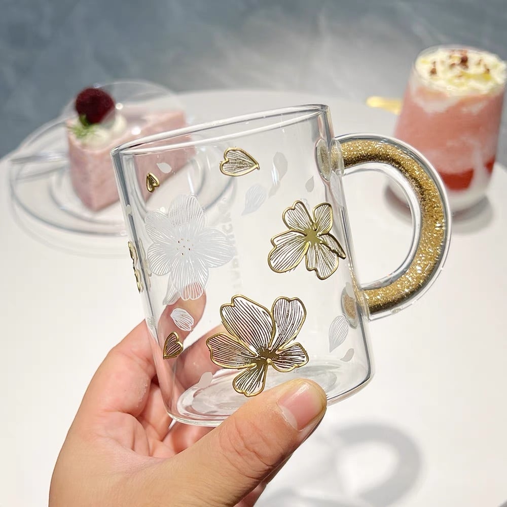 キラキラ クリスタル入り!花 ガラス グラス マグカップ 台湾 スターバックス 韓国 中国 海外 北米 香港 アメリカ シンガポール タイ 雑貨 STARBUCKS スタバ マグ ボトル プレゼント ギフトにも!お誕生日